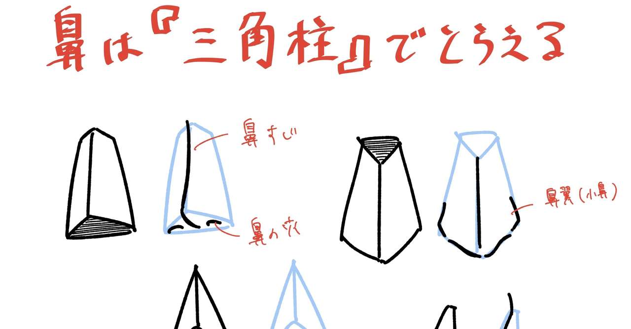 顔の描き方 顔のパーツのバランスの取り方 鼻の形を知ろう イラスト マンガ描き方ナビ
